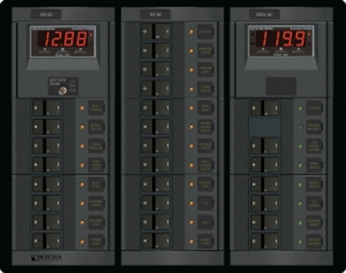 Blue Sea Systems 360 Sigorta paneli. 6 AC, 19 DC pozisyonlu. 12V DC/230V AC. 346x273mm.