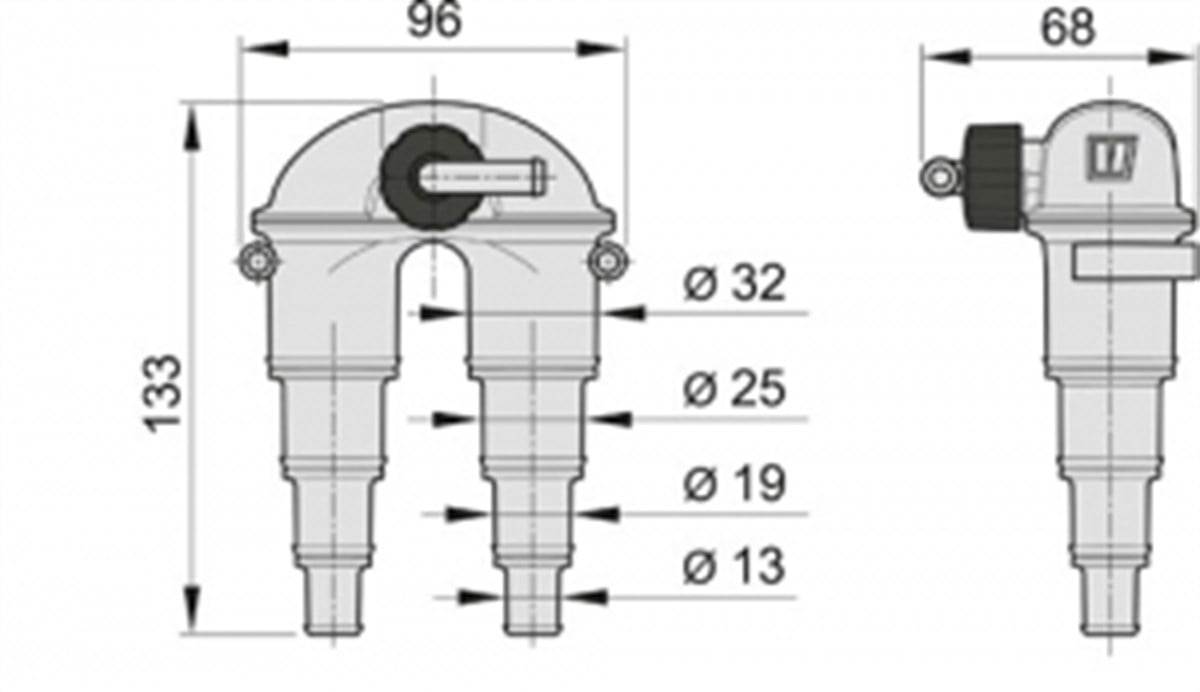 Valfli olan model bir basınç valfiyle donatılmıştır ve otomatik çalışır. Tuz kristalleri nedeniyle tıkanmaya karşı periyodik bakım gerektirir. 13 mm (1/2"), 19 mm (3/4"), 25 mm (1") ve 32 mm(1¼") iç çaplı hortumlara uygundur. Çıkış nipelini 360º dönebilir.