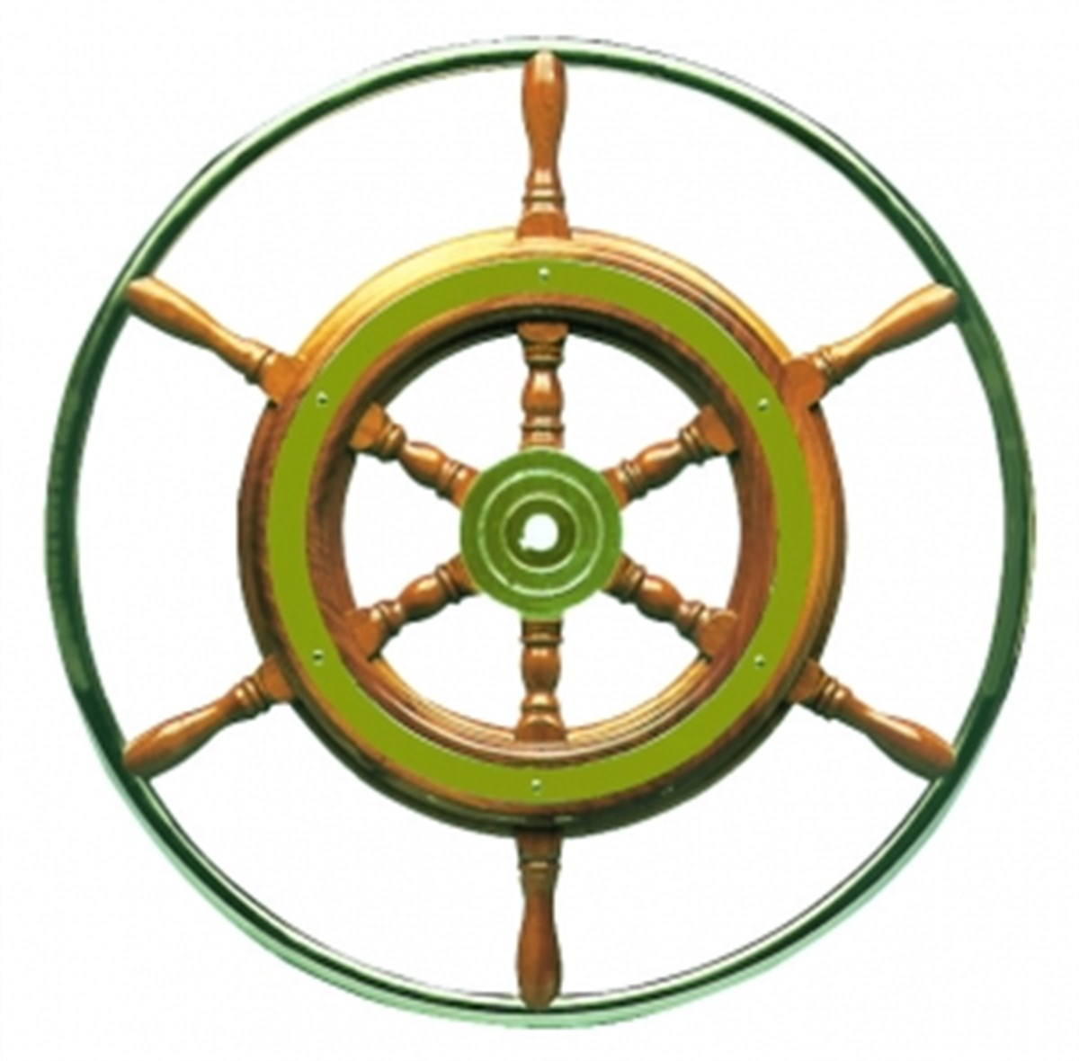 Ahşap dümen, paslanmaz çelik tutamaklı.